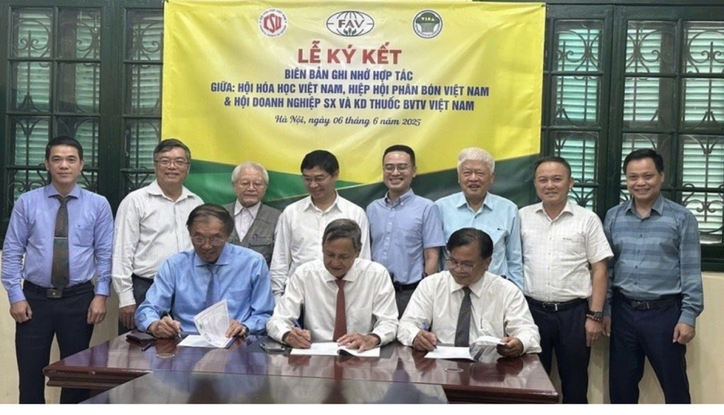 Ngày 6/6, tại Hà Nội, Hội Doanh nghiệp sản xuất và kinh doanh thuốc bảo vệ thực vật Việt Nam phối hợp với Hội Hóa học Việt Nam, Hiệp hội Phân bón Việt Nam tổ chức Lễ ký kết biên bản ghi nhớ hợp tác về việc nâng cao hiệu quả sử dụng nguyên liệu, vật tư đầu vào, quản lý hài hòa hóa chất, phân bón, thuốc bảo vệ thực vật.